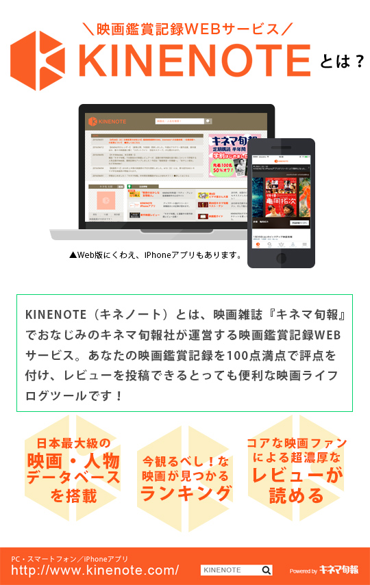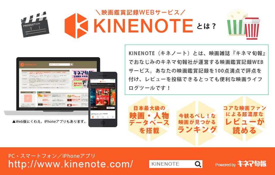 この巨大なデータベースから各作品ごとのユーザー・レビューをザ・シネマのウェブサイトでは読み込んで表示。書き込みはKINENOTEから登録を。