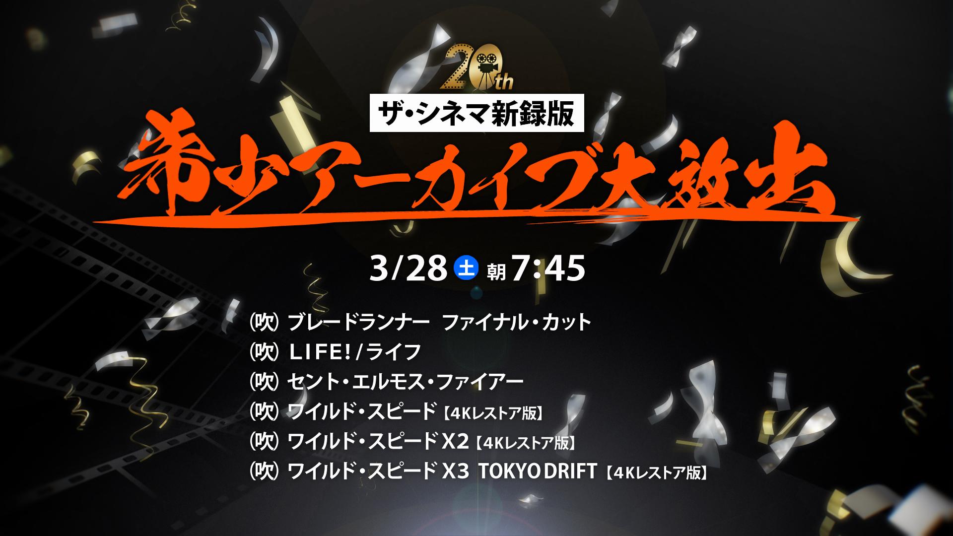 記念すべき第1弾『ブレードランナー ファイナル・カット』から、2025年の最新第11弾で初期3作が新録版でコンプリートとなった『ワイルド・スピード』『ワイルド・スピードX2』『ワイルド・スピードX3 TOKYO DRIFT』、2019 年第3弾制作のベン・スティラーが監督・主演を兼任して描く人生賛歌『(吹)LIFE!/ライフ【ザ・シネマ新録版】』、2022年第7弾制作の、大学を卒業し社会へ踏み出した男女7人の青春模様を若手スター競演で描く傑作群像ドラマ『(吹)セント・エルモス・ファイアー【ザ・シネマ新録版】』など6作品を3月28日(土) 7:45~連続放送。