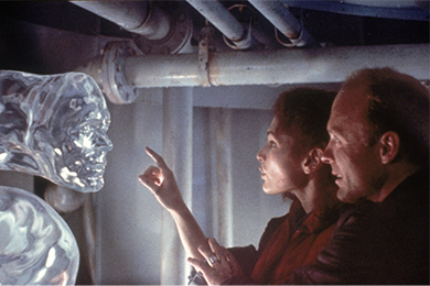 海を愛するジェームズ・キャメロン監督が、リアリティにこだわって実際に水中で撮影を敢行。その一方、未知の生物との遭遇を当時最先端のモーフィング技術を駆使して映像化し、アカデミー賞視覚効果賞を受賞。
