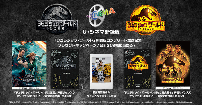 最後に、山寺が「今年は久しぶりに恐竜ブームが来ているのかなという気もしますし、ザ・シネマでこの新録版を見る人がどんどん増えたらいいなと思います。『ジュラシック』シリーズの『ワールド』3部作を通して、新録版をぜひ楽しんで欲しい」と力強い言葉で締めくくり、キャスト陣も口々に「わたしたち、頑張りました!」と笑顔で語った。